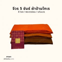 จีวร 5 ขันธ์ เนื้อผ้าโทเร สีทอง / สีพระราชนิยม/ สีแก่นบวร