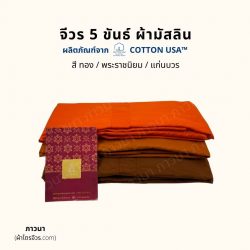 จีวร 5 ขันธ์ เนื้อผ้ามัสลิน มงกุฏ สีทอง / สีพระราชนิยม / สีแก่นบวร